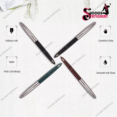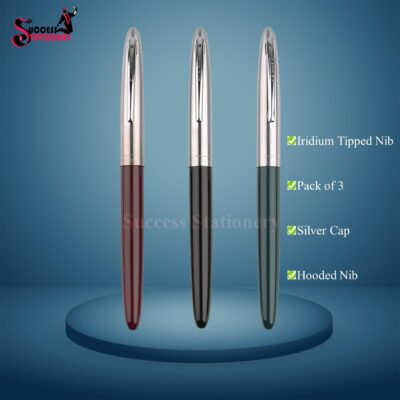 This Hero Pen Original Fountain Pen set offers a premium writing experience with its smooth iridium tip nib designed for clean, consistent strokes. The pens feature a timeless gold arrow pattern along with an elegant silver trim cap that enhances their classic appeal. Each pen is refillable, making it economical and eco-friendly for everyday use. The set includes three stylish colors—black, green, and maroon—ideal for personal writing, office work, or gifting. Crafted with durable materials, these pens ensure reliability and long-term performance. Their comfortable grip allows for extended writing sessions without strain. Perfect for professionals, students, and pen enthusiasts seeking elegance and functionality in one package.