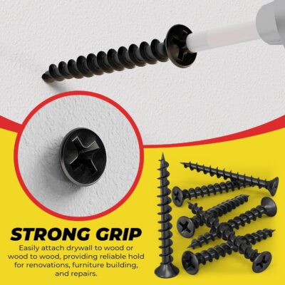 The Hi-Plasst Nylon Wall Plug & Screw Set (25mm, 1 Inch) offers a complete fixing solution for your DIY and professional needs. Each set includes 100 nylon wall plugs and 100 matching screws made from black hardened steel with anti-rust coating for long-lasting durability. The nylon plugs expand securely inside the wall, ensuring a strong and stable hold in materials like wood, brick, concrete, plaster, and drywall.