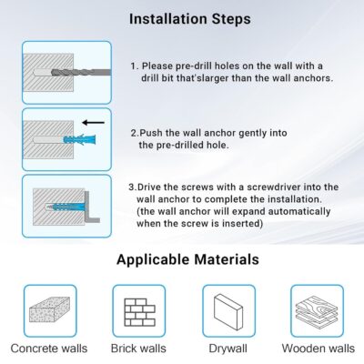Perfect for mounting shelves, curtain rods, photo frames, or light fixtures, this versatile kit makes installation easy, safe, and professional.