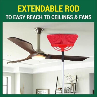 The extendable rod lets you adjust the length to your height, making it comfortable to clean ceilings, fans, walls, corners, and floors without needing to bend or stretch too much.