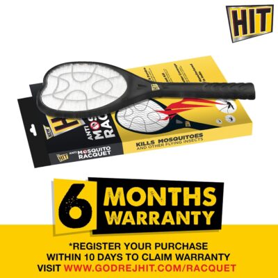 Instantly kill mosquitoes with the HIT Rechargeable Mosquito Racquet featuring a powerful 3500V mesh, 400mAh long-lasting battery, and in-built LED light. Made with durable aircraft-grade ABS for reliable indoor and outdoor use.