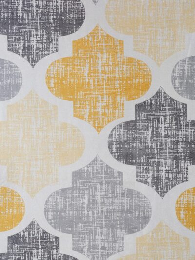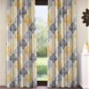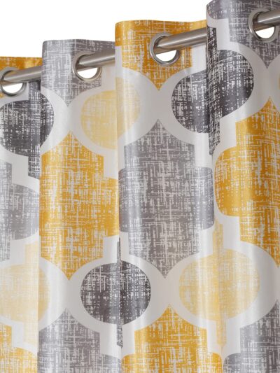 Crafted from premium glace cotton polyester fabric with a 150 GSM quality, these curtains offer a semi-transparent finish that softly filters natural light while maintaining a cozy ambiance indoors. The bold Moroccan geometric motif in a vibrant yellow shade enhances the overall aesthetic, making them a stylish addition to your living room, lounge, or modern interiors.