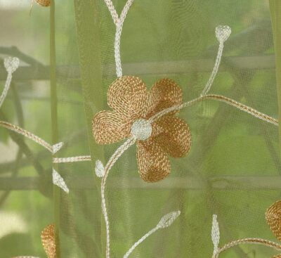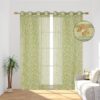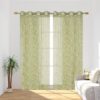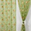 Homefab India Embroidery Floral Net Transparent Sheer Curtain - 7X4 Feet, Door Curtains, Green, Pack of 2 Pcs