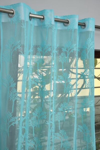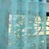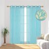 Homefab India Pack of 2 Tissue Curtains Sheer Panel Transparent Net - 7 Feet, Door, Aqua Blue, Floral, Grommet Curtains