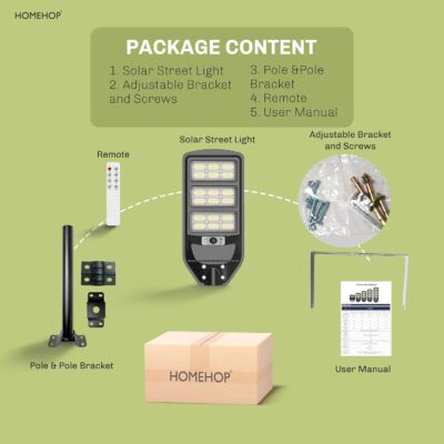 Be the first to review “Homehop Outdoor Solar Light 180W Waterproof Street Night Lamp 396 LED with Motion Sensor for,Garden, Pathway, Home, Automatic with Pole (ABS- Cool Light)”