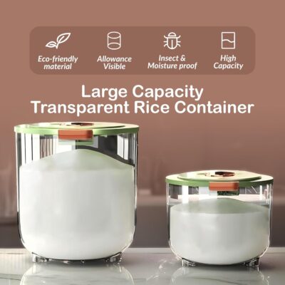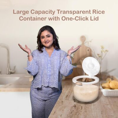 A unique built-in insect-repellent box allows you to place natural repellents like star anise or garlic to keep grains fresh and pest-free. The transparent body lets you easily monitor quantity, while the wide-mouth design makes scooping, refilling, and cleaning hassle-free.