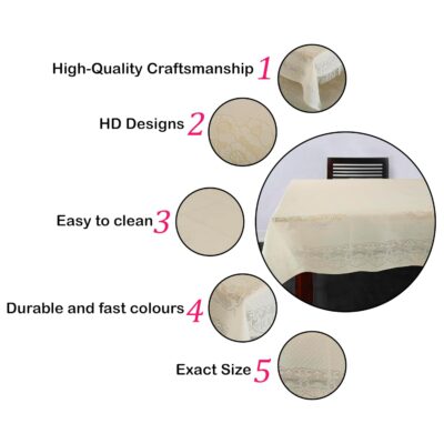 Add a touch of classic elegance to your living space with the Homers Premium Center Tablecloth, crafted from high-quality cotton table linen for a refined and durable finish. Designed in a sophisticated Jhallar Cream shade, this 40 × 60-inch table cover fits most standard center tables, enhancing them with a clean, royal look. The soft yet sturdy cotton fabric offers excellent protection against dust, spills, scratches, and daily wear while maintaining a stylish and inviting appearance. Perfect for both everyday use and festive décor, this premium tablecloth elevates your room with its graceful drape and timeless charm. Easy to spread, maintain, and wash, it brings together durability, elegance, and practicality—making it an ideal choice for any modern or traditional home.