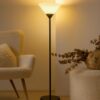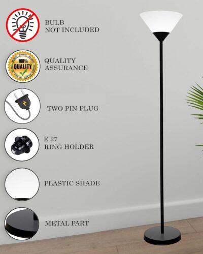 Homesake® Sky Ribbed Dome Standing Lamps with Acrylic Shade | Modern Floor Lamp for Living Room | Office | Corner Lamp for Living Room Straight Black (Black, Inverted)