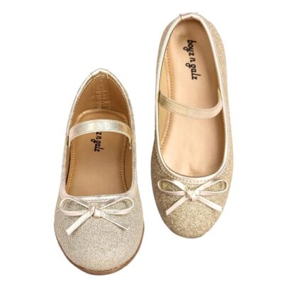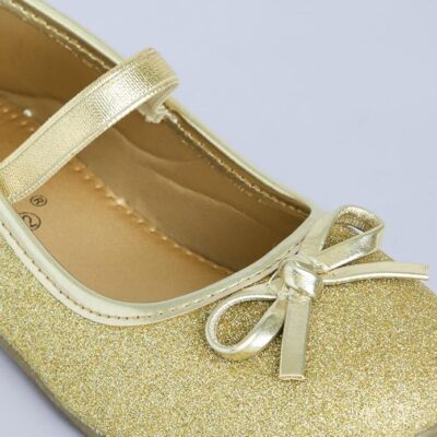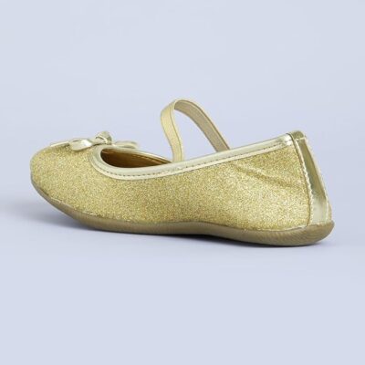 Let your little princess sparkle with every step in these Hopscotch Baby Girls Glitter Embellished Ballerinas. Crafted from high-quality synthetic/PU material, these ballerinas combine durability with a soft and comfortable feel, perfect for delicate little feet. The glitter finish adds a magical touch, making them a delightful choice for parties, festive occasions, or family gatherings. Designed with a secure slip-on style and soft cushioned insole, these shoes provide all-day comfort and ease of wear. The non-slip outsole ensures stability and safe movement, while the shimmering gold color perfectly complements both traditional and modern outfits.