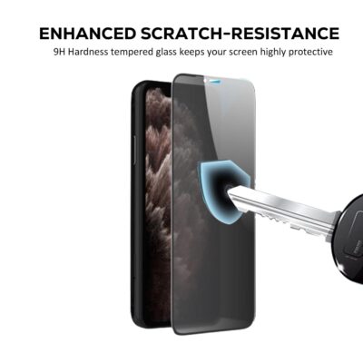 The HUMBLE Edge-to-Edge Privacy Tempered Glass Screen Protector provides secure and durable protection for iPhone XS Max and 11 Pro Max. Built with 9H hardness, it resists scratches, drops, and daily wear while maintaining smooth touch responsiveness. The privacy layer limits side-view visibility, keeping your screen content safe from prying eyes without affecting display clarity. Its edge-to-edge design offers complete coverage and a seamless fit that works well with most cases. The ultra-clear glass maintains vivid colors and natural brightness for an enhanced viewing experience. An oleophobic coating helps prevent fingerprints, smudges, and oil buildup for a consistently clean look. The easy self-installation kit ensures bubble-free, precise application every time.