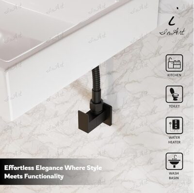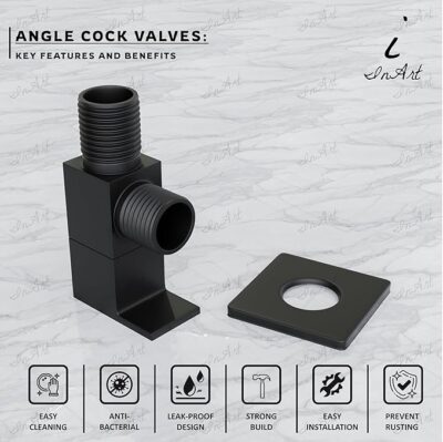 The In Art Brass Angle Valve is a premium-quality, wall-mounted stop valve designed to control water flow to fixtures such as toilets, wash basins, and water heaters. Crafted from durable brass, this valve ensures long-lasting performance and resistance to corrosion. Its sleek black matte finish adds a contemporary touch to any bathroom or kitchen decor.