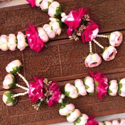 This pack of 2 garlands features vibrant artificial flowers arranged with precision, making them perfect as groom and bridal accessories, wedding anniversary gifts, or thoughtful return gifts for guests.