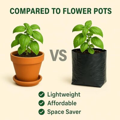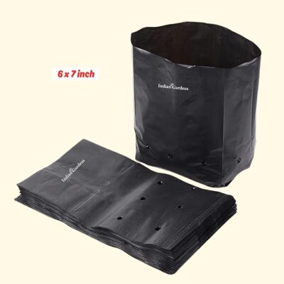 Indian Gardens 6 x 7 Inch Black Poly Grow Bags are heavy-duty, durable nursery bags designed for efficient and healthy plant cultivation. Made from high-quality, sturdy plastic, these grow bags provide excellent support for root development, proper drainage, and soil aeration, helping plants grow stronger and healthier. Their compact size makes them ideal for vegetables, flowers, saplings, herbs, and home gardening needs, especially in nurseries, balconies, terrace gardens, and small spaces. Lightweight, reusable, and easy to handle, these black poly grow bags are suitable for both beginners and professional growers. With a 200-gram pack, Indian Gardens Grow Bags offer a practical and economical solution for organized, space-efficient, and productive gardening.