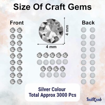 INDIKONB Round Resin Rhinestones for Craft, Embroidery, Jewellery Making | Sparkling Flat Stone Embellishments for DIY Projects (Silver 4MM)