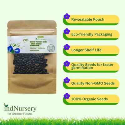 IndNursery Butterfly Pea / Aparajita Flower Seeds (Blue, 4 g) are ideal for home gardening, terrace gardens, balconies, and outdoor planting. Butterfly pea is a fast-growing climber known for its striking deep blue flowers, ornamental beauty, and traditional herbal uses. These high-quality seeds offer good germination and develop into healthy vines that thrive in pots, grow bags, fences, and trellises with adequate sunlight. The flowers are commonly used for natural blue tea, décor, and spiritual purposes. Easy to grow and low maintenance, this seed pack is perfect for beginners and garden enthusiasts who want to add vibrant color and natural charm to their home garden.