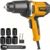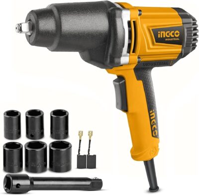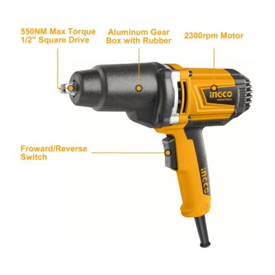 Ingco Impact Wrench, 550NM Electric Wrench, Fixed Square Aluminum Gear Box, Nut Bolt Opener Tool Machine With 6 Pcs Sockets, 1Pcs 125Mm Adaptor