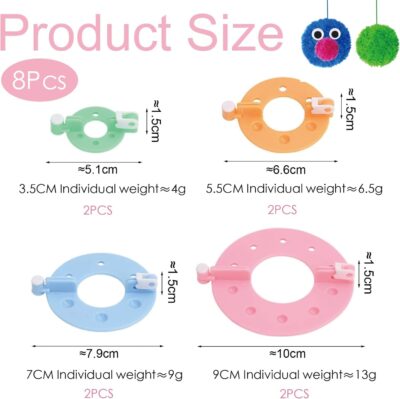 INOCEAN 8PCS Pom Pom Maker, Fluff Ball Weaver Needle Tool Kit, 4 Sizes Pompom Maker Set for DIY Wool Yarn Knitting Craft, Multicolor Bobble Ball Making Tool for Kids and Adults, Color Random