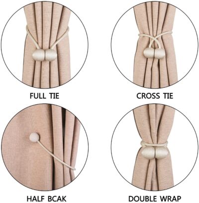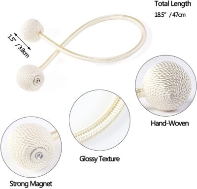 Made with a woven rope design and decorative magnetic balls, these tiebacks add a touch of elegance to any space, making them perfect for living rooms, bedrooms, dining areas, kitchens, offices, French doors, and studios. When not in use, they can simply be clipped onto the curtain for storage.