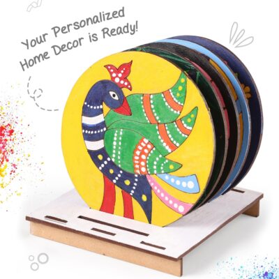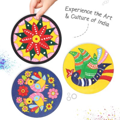 Intelliskills 3-in-1 Premium Tea Coaster Painting Kit for Kids–DIY Mandala, Madhubani&Pichwai Art–Non-Toxic, DIY Art&Craft Kit with Brush&Stand for 3+ Years, Painting Kit for Girls&Boys, Birthday Gift