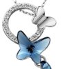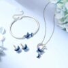 Italian Designer Platinum Plated Crystal Butterfly Earrings Chain Pendant Necklace Combo Jewellery Set for Women and Girls (Blue)