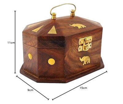 This ITOS365 handmade wooden jewellery box is crafted with a beautiful brown mix finish and highlighted with an intricate elephant décor that adds a touch of traditional charm. Designed in a compact 6-inch size, it offers convenient storage for rings, earrings, chains, and small accessories. The sturdy wooden construction ensures durability while providing a premium handcrafted appeal. Its secure latch closure keeps valuables protected, making it suitable for daily use or travel. Ideal for gifting on birthdays, anniversaries, weddings, and festive celebrations, it brings elegance to any occasion. Lightweight and decorative, it blends well with both classic and modern home décor styles. This jewellery organizer beautifully combines craftsmanship, utility, and cultural artistry in one thoughtful keepsake.