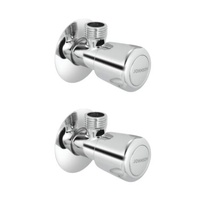 Johnson Bathrooms Universal Brass Angle Cock with Flange| Brass Body Chrome Finish Wall Mounted Angle Valve | Exterior Chrome Finish Angle Valve (Pack of 2)