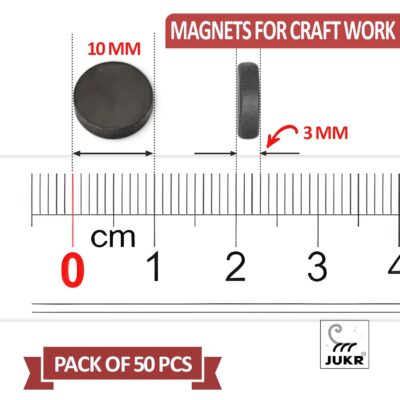 JUKR Round Disc Small Magnets | 10mm Diameter x 3mm Thickness | Pack of 50 | Ceramic Magnets for Art, Crafts, DIY Projects, Fridge & Notice Boards