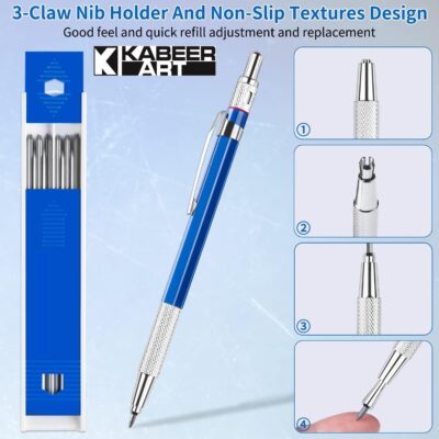The KABEER ART 2.0mm Mechanical Pencil is designed for smooth and consistent writing with strong, bold lead suitable for notes, sketches, and detailed art projects. Its 2.0mm lead provides thick, dark lines for clear visibility on all paper types. The pencil is lightweight and easy to hold, ensuring comfort during long writing or drawing sessions. Ideal for students, professionals, and hobby artists, it delivers reliable performance for both schoolwork and creative projects. The durable black body adds a sleek and modern look to your stationery collection. Easy to refill, this mechanical pencil supports repeated use without compromising precision. A practical and versatile tool, it is perfect for writing, drawing, and artistic exploration.