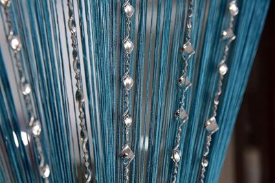 KACHVI Decorative Polyester Solid Thread Sheer Grommet Curtains |String Thread Curtains |Room Divider Curtains Thread Door Curtains | Beads Curtains| Pack Of 1 (4 X 7 Ft, Aqua)