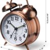 Kadio Loud Alarm Clock for Heavy Sleeper, 4 Inches Twin Bell Battery Operated Metal Alarm Clocks with Night Light for Bedrooms, Retro Analog Alarm Clock for Adults, Silent Non-Ticking (Red Brown)