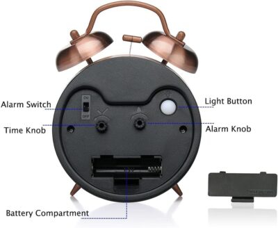 The Kadio Loud Alarm Clock combines retro design with practical functionality for adults and heavy sleepers. Its 4-inch twin bell metal frame delivers a loud and clear alarm, ensuring timely waking without fail. Battery-operated and silent, it eliminates ticking noise for a peaceful environment. The built-in night light allows easy time reading in the dark, making it ideal for bedrooms or study areas. Compact and stylish, this retro analog alarm clock adds a classic touch to any room while remaining highly functional.