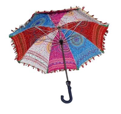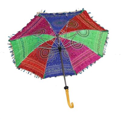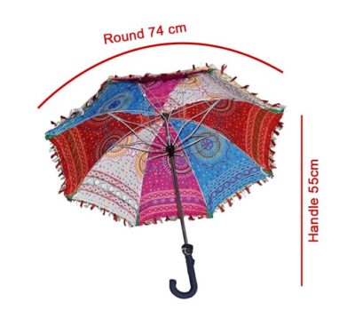 Handcrafted Rajasthani embroidered umbrella made from premium cotton fabric. Perfect for home décor, Navratri celebrations, photoshoots, handicraft displays, and fashion props. Not suitable for rain.