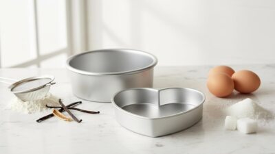 The Kanshita’s Rasoiware Aluminium Cake Mould Set (7 inch Heart & Round) is a versatile and practical bakeware duo designed to elevate your home baking game. Crafted from premium food-grade aluminium, these 7-inch moulds offer even heat distribution and rust resistance for consistently well-baked cakes and treats. The set includes one heart-shaped and one classic round cake pan — perfect for creating themed or everyday desserts for birthdays, anniversaries, and special occasions. The smooth interior surface ensures easy release of cakes and desserts with minimal sticking, while their sturdy build makes them suitable for use in conventional ovens, microwave ovens (convection), and pressure cooker baking. Beyond cakes, they’re ideal for baking sponge cakes, cheesecakes, brownies, breads, quiches and more, and are freezer and oven safe so you can set cold desserts as well. Easy to wash and maintain, this set adds versatility and convenience to any kitchen’s bakeware collection.