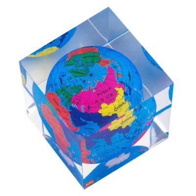 Kebica Globe Epoxy Resin Paperweight – Cube Shape (2 inch)