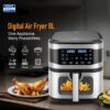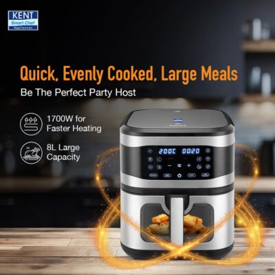 The KENT Digital Air Fryer 8L offers powerful 1700W performance with 360° air circulation for healthier, oil-free cooking. Featuring a spacious 8L capacity, 7 preset menus, digital display with touch control, and a glass window with built-in light, it ensures effortless baking, grilling, roasting, and air frying at home.