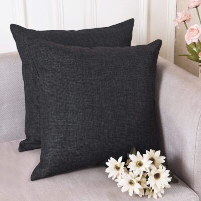 Khooti Decorative Jute Square Cushion Cover Throw Pillow Cover for Living Room Couch Diwan Single Seater Sofa, Modern Boho Small 10 x 10 Inches / 25 x 25 cm (Colour - Dark Grey)(Set of 1 Piece)-50 TC