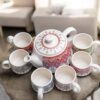 It includes a beautifully designed teapot and six matching cups, perfect for serving guests.