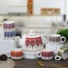 The Khurja Crockery Hub handcrafted ceramic tea set features a vibrant multicolor geometric print.