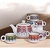 Khurja Crockery hub Handcrafted Multicolor Geometric Print Ceramic Tea Set with Teapot & 6 Cups | Elegant Tableware for Home & Gifting