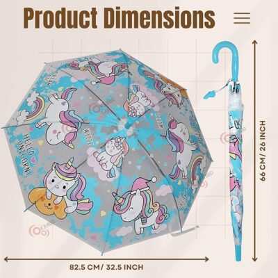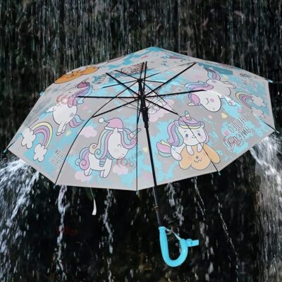 Make rainy days exciting and worry-free with this colourful Kids Cartoon Umbrella with Whistle. Designed with vibrant graphics and a playful unicorn theme, this umbrella comes with a built-in whistle that adds fun to playtime while serving as a safety alert when needed. The lightweight, windproof frame offers reliable strength, while plastic safety tips and a smooth round handle ensure safe handling for children.