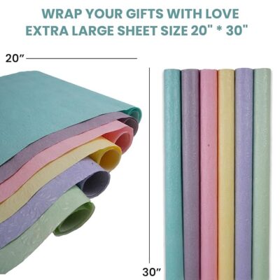KidsyWinsy Premium Gift-Wrapping Paper Sheets (Pastel Embossed, Pack Of 6) With Tags, Ribbon Bows, Confetti | Gift Wrap Paper for Packing | Wrapping Sheets For Birthday, Wedding Anniversary, Festive Occasions