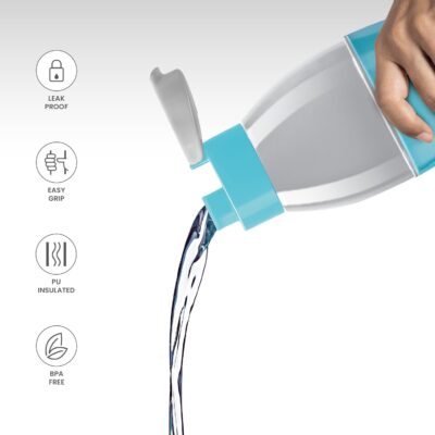 It keeps beverages cold for hours, making it ideal for school, picnics, or daily use. Its leakproof lid and hands-free sipper ensure hygienic and spill-free drinking. Made from durable, food-grade plastic, the bottle is BPA-free and easy to clean.