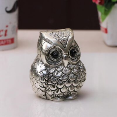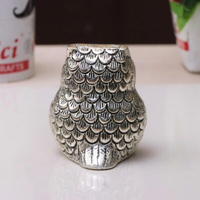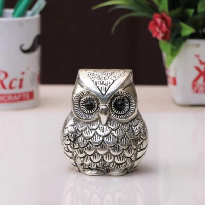 This KridayKraft Vintage Metal Owl Paperweight is crafted from high-quality aluminum with a silver finish, designed as a symbol of wisdom and good fortune. Inspired by the owl — vehicle of Goddess Laxmi — it serves as both a decorative idol and a functional desk paperweight. With its smooth edges, detailed craftsmanship, and sturdy form, it enhances office tables, study desks, and home décor. A thoughtful gift for housewarmings, anniversaries, weddings, or new ventures.