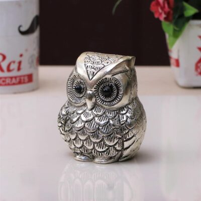 KridayKraft Vintage Metal Owl Paperweight & Showpiece – Silver