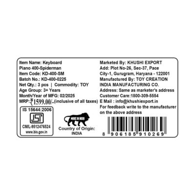 The Kriiddaank Spiderman Keyboard Piano 400 is an exciting and interactive musical toy designed to introduce kids to the world of music through fun and play. This battery-operated keyboard piano features engaging musical note sounds that help children develop rhythm, coordination, and creativity. Its compact and portable design makes it easy to carry anywhere, ensuring entertainment on the go. Decorated with vibrant Spiderman graphics, it instantly captures kids’ attention and keeps them engaged in imaginative play. Made from safe, durable, and child-friendly materials, this keyboard is perfect for early learning, encouraging auditory development and a love for music in young minds. Ideal for both playtime and learning, it’s a great gift choice for boys and girls alike.
