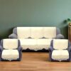 Kuber Industries Floral Sofa Cover 5 Seater Cotton Sofa Cover 3Seater and 2Seater Full Cover Set for Couch Seat Pack of 6 (Cream)