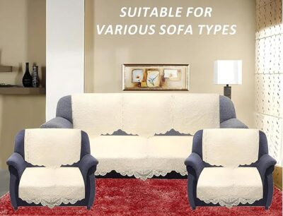 Refresh and protect your living room furniture with the Kuber Industries Floral Sofa Cover Set, designed for 5-seater sofas. This complete set includes one 3-seater cover, and two 2-seater covers, along with matching cushion covers, making a pack of 6 for full sofa protection. Crafted from high-quality cotton fabric, the covers are soft, breathable, and comfortable for everyday use. The elegant cream color combined with a subtle floral pattern adds a touch of sophistication, instantly enhancing the overall look of your home décor. These covers safeguard your sofa from dust, spills, stains, and daily wear while giving old furniture a fresh new appearance. Easy to maintain and suitable for most standard sofa sizes, this full-coverage set offers the perfect blend of durability, style, and practicality—ideal for families who want both beauty and protection in their living space.