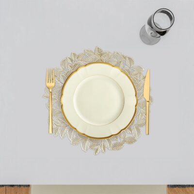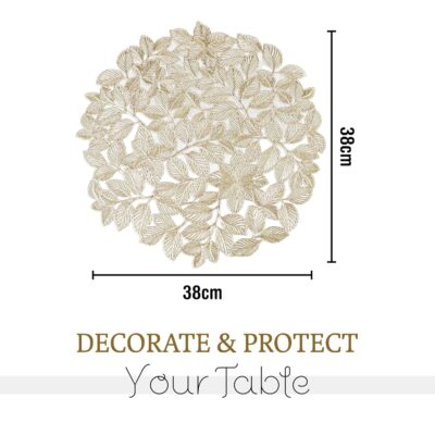 The Kuber Industries Set of 6 Round Table Mats adds elegance and protection to your dining table. Heat-resistant and stylish, these golden leaf-designed mats are perfect for plates, cakes, desserts, and everyday meals.