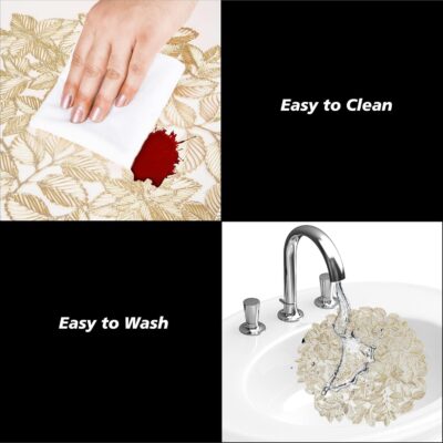 The Kuber Industries Round Table Mats are designed to enhance your dining experience with both style and functionality. Crafted from durable, heat-resistant material, they protect your table from hot dishes, spills, and scratches. Each mat features a small leaf design in a golden finish, adding a sophisticated touch to any table setting. The set includes six mats, ideal for family meals, parties, or special occasions. Lightweight and easy to clean, they can be wiped with a damp cloth for quick maintenance. Perfect for plates, desserts, cakes, or cups, these mats combine practicality with aesthetic appeal. Elevate your dining décor with this elegant, versatile, and durable placemat set.