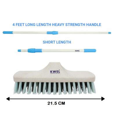 The KWEL Plastic Cleaning Heavy Duty Hardy Brush with Telescopic Rod (Pack of 1 – White) is a versatile and robust cleaning tool designed to tackle stubborn dust, dirt, and debris on a variety of surfaces. Featuring a long telescopic handle, this brush lets you adjust the length for comfortable cleaning without bending or straining your back, making it ideal for floors, tiles, carpets, patios, garages, and more. The hardy, heavy-duty bristles are strong enough to sweep away tough grime yet gentle enough for everyday use. Built from durable plastic, this brush is lightweight, easy to handle, and rust-resistant — perfect for both wet and dry-cleaning tasks. Its ergonomic design ensures a secure grip, while the extended reach helps you clean hard-to-reach areas with ease. A practical and efficient choice for household or commercial cleaning, this KWEL brush simplifies floor maintenance and delivers reliable performance every time.